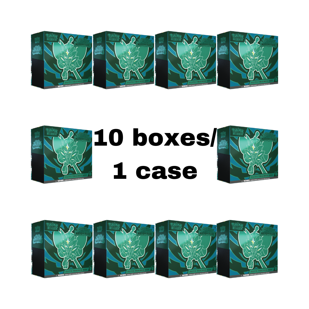 Global Release Date: 5/24/24Our Release Date: 5/20/24**As an official Prerelease store, we are able to sell and have product in our customers’ hands the Monday before the global release date.A Festival of Mischief & Mystery!Welcome to the land of Kitakami, where people and Pokémon live harmoniously with nature. Folktales abound, but not all is as it seems… Uncover the mystery of the masked Legendary Pokémon Ogerpon, appearing as four fearsome types of Tera Pokémon ex, and team up with more newly discovered Pokémon, like Bloodmoon Ursaluna ex and Sinistcha ex. Growing in power, Greninja, Dragapult, and Magcargo dazzle as Tera Pokémon ex, and more ACE SPEC cards round out the festivities in the Pokémon TCG: Scarlet & Violet—Twilight Masquerade expansion!Each Pokémon TCG: Scarlet & Violet—Twilight Masquerade Elite Trainer Box includes:• 9 Pokémon TCG: Scarlet & Violet—Twilight Masquerade booster packs• 1 full-art foil promo card featuring Teal Mask Ogerpon• 65 card sleeves featuring Ogerpon• 45 Pokémon TCG Energy cards• A player’s guide to the Scarlet & Violet—Twilight Masquerade expansion• 6 damage-counter dice• 1 competition-legal coin-flip die• 2 plastic condition markers• A collector’s box to hold everything, with 4 dividers to keep it organized• A code card for Pokémon Trading Card Game Live10 ETBs per a sealed case with the case shipped in an another box